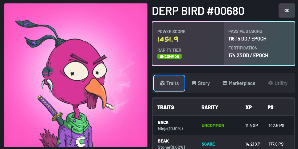 A character's power score and how much it earns each epoch from fortifying can be viewed within the Derp App.